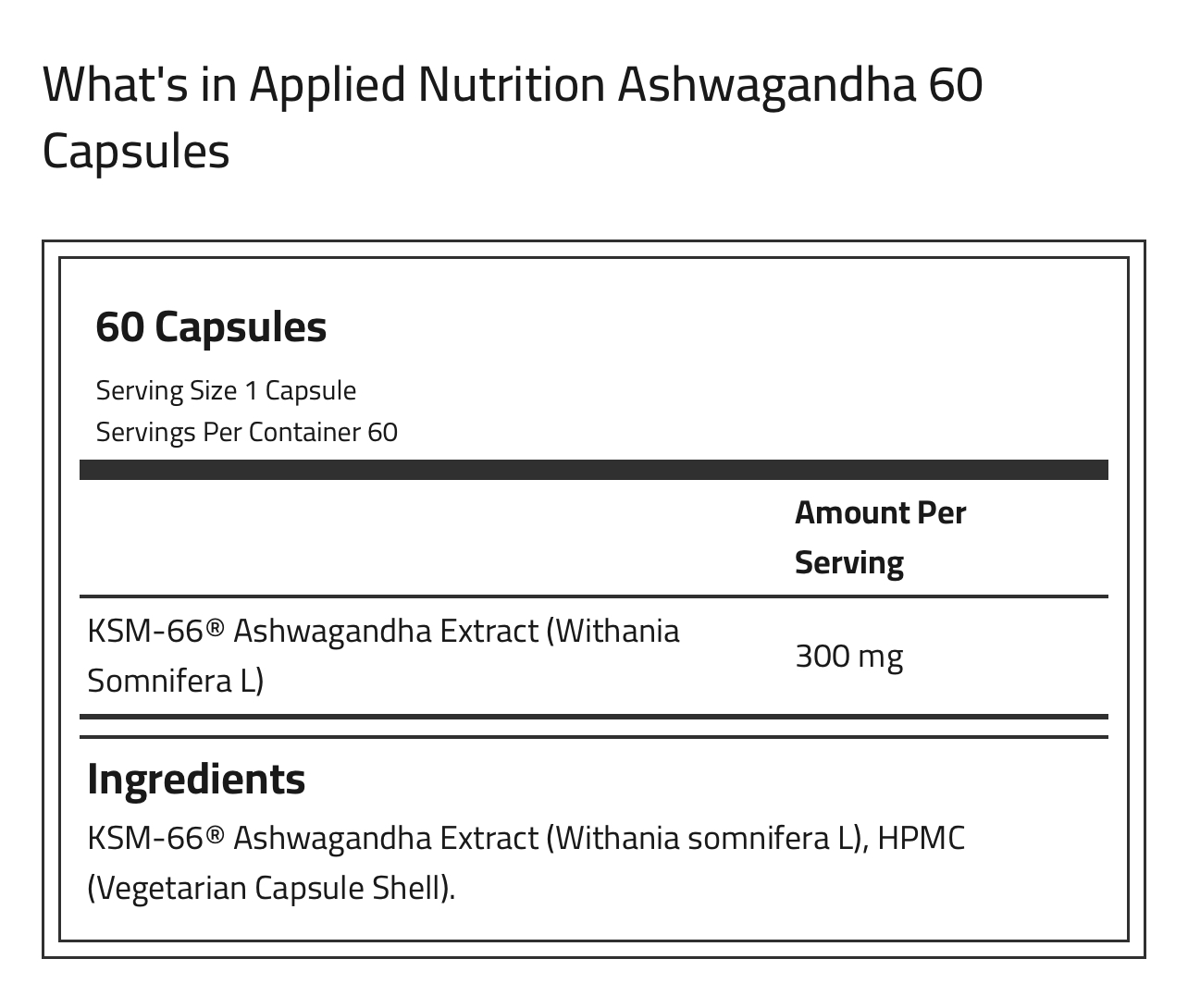 Applied Nutrition Ashwagandha KSM-66® est une forme haut de gamme et cliniquement étudiée d’ashwagandha, reconnue comme la plus puissante et la plus pure disponible.