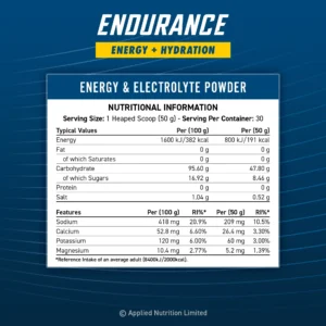 Applied Nutrition Endurance Energy + Electrolyte est une formule avancée conçue pour soutenir l’endurance, maintenir une hydratation optimale et retarder la fatigue pendant les efforts longs et intenses.